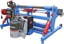 Reel transport and payoff has doubles as a high capacity payoff system with options including a 16" Bronze Ventilated Disc or electromagnetic tension brake system and powered payoff and rewind assist reel rotation.